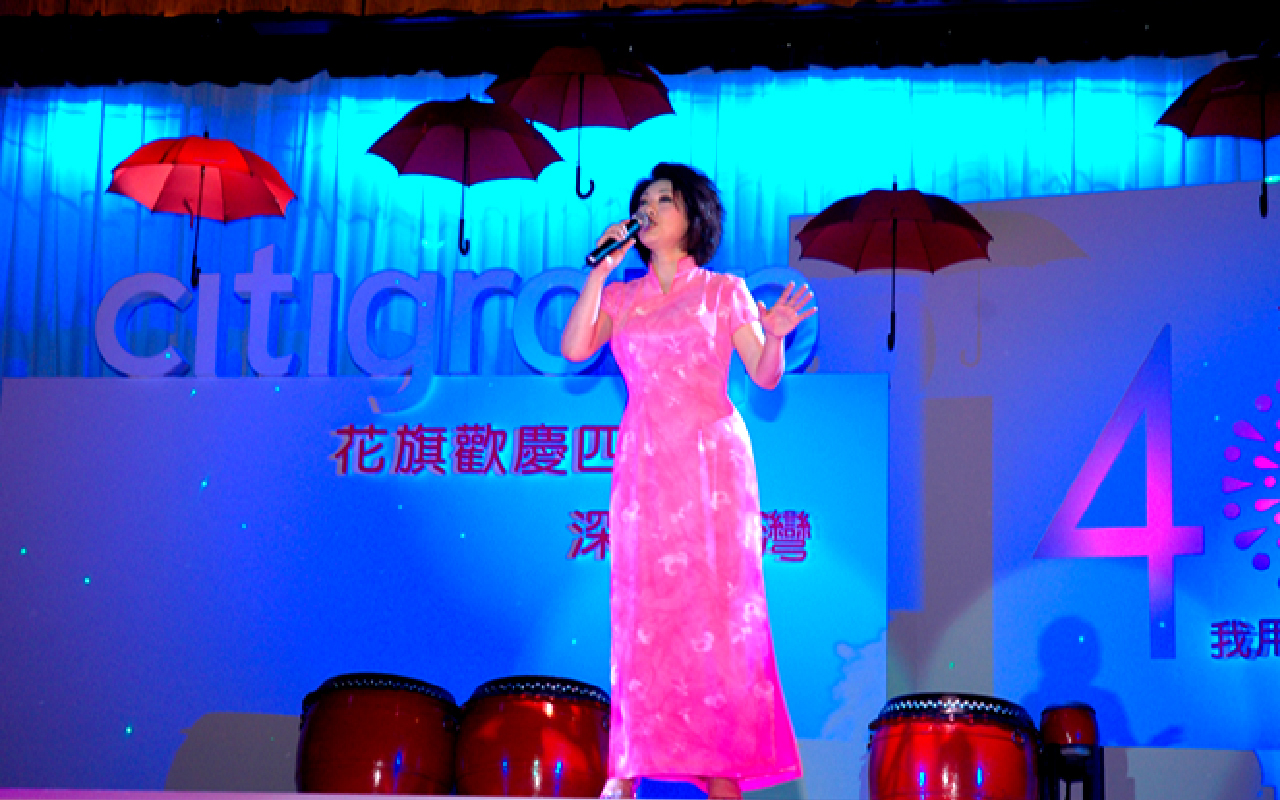 在舞台區部份,選擇具有歷史意義的圓山大飯店,節目邀請知性感性兼具的蔡康永為主持人,內容有蔡琴演唱40年來代表歌曲,及孔雀舞、舞龍舞獅等表演,現場提供的伴手禮則為壽桃禮盒,完全展現花旗銀行在地化的企圖與成果。