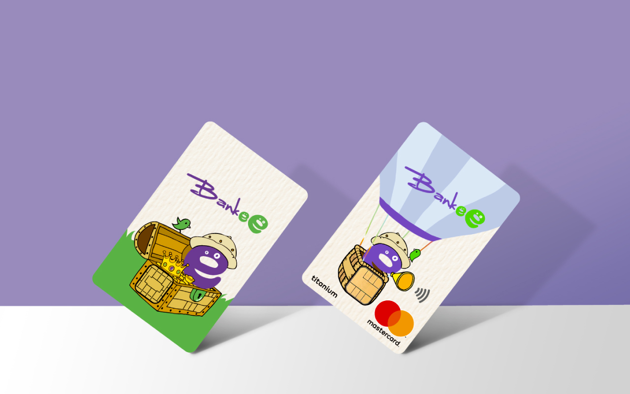 如何為自己加薪?加入社群銀行bankee,就如同坐在藏寶箱上,享有創造財富新方法。信用卡畫面巧妙將晶片及Mastercard Contactless連結,兩者皆透過吉祥物,傳達出社群銀行獨有、輕鬆也能理財的氣氛。