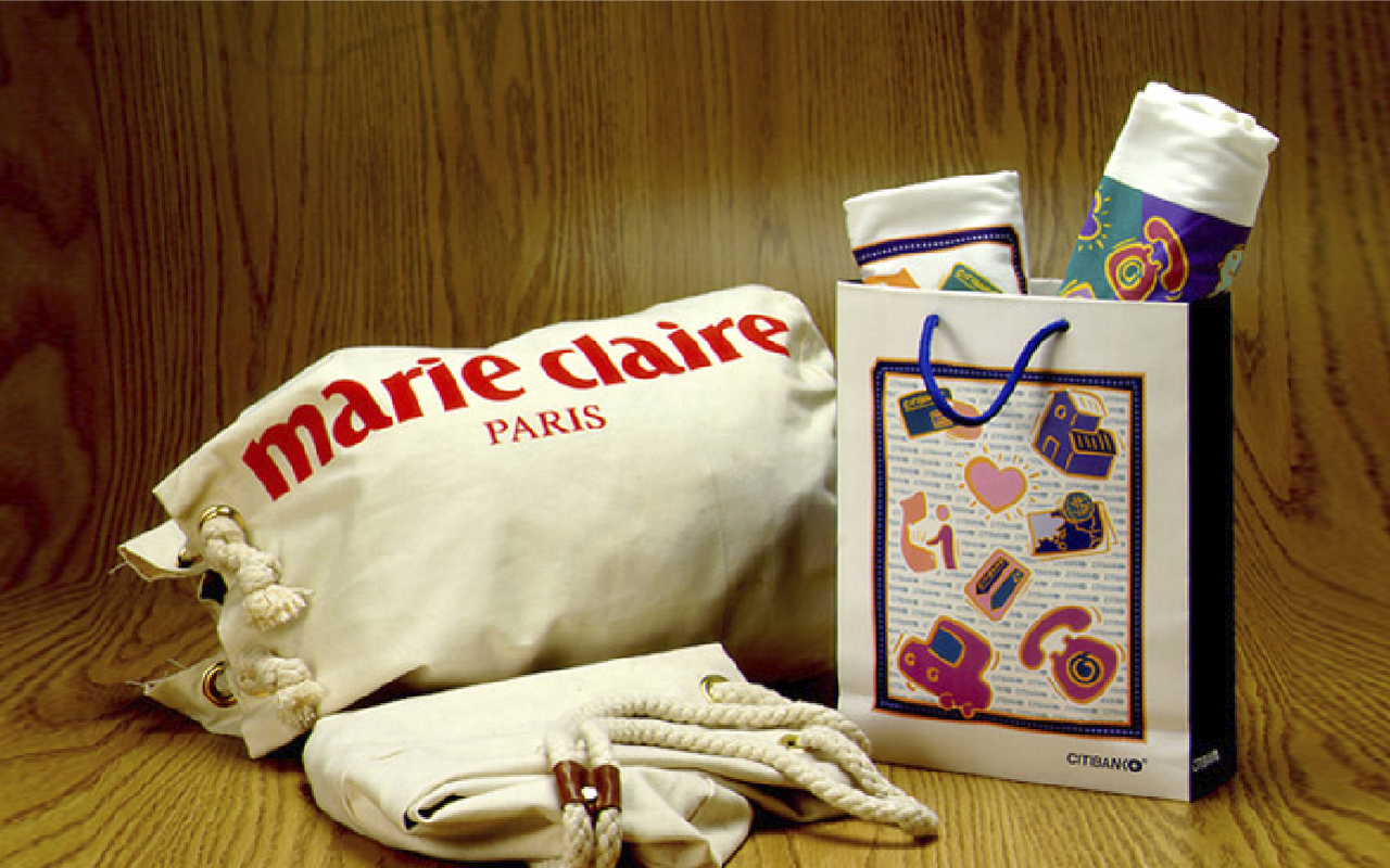 花旗銀行贈品:改變銀行冰冷的形象,將服務項目以可愛的插畫風呈現,應用至T-Shirt、杯墊、提袋等日常需求,增加好感度。