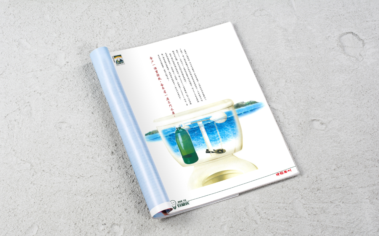 中:馬桶水箱放著裝滿水的寶特瓶,並將水箱融合水庫的畫面,巧妙的傳遞了,你的省水動作與水庫的連動關係:經過計算只要每個家庭幫個小小的忙,一年就可以省下一座石門水庫的水。