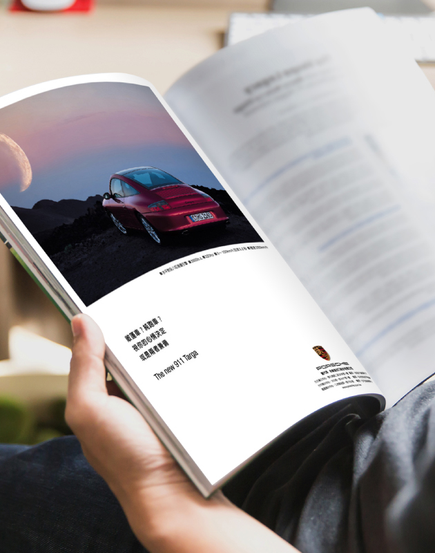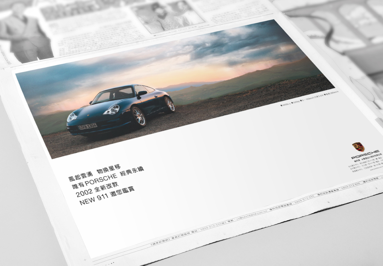 乾淨、簡約的排版,一如Porsche NEW 911的產品力,不需要太多的說明,用最簡單的文字,即能留下對產品的無限想像與期待。